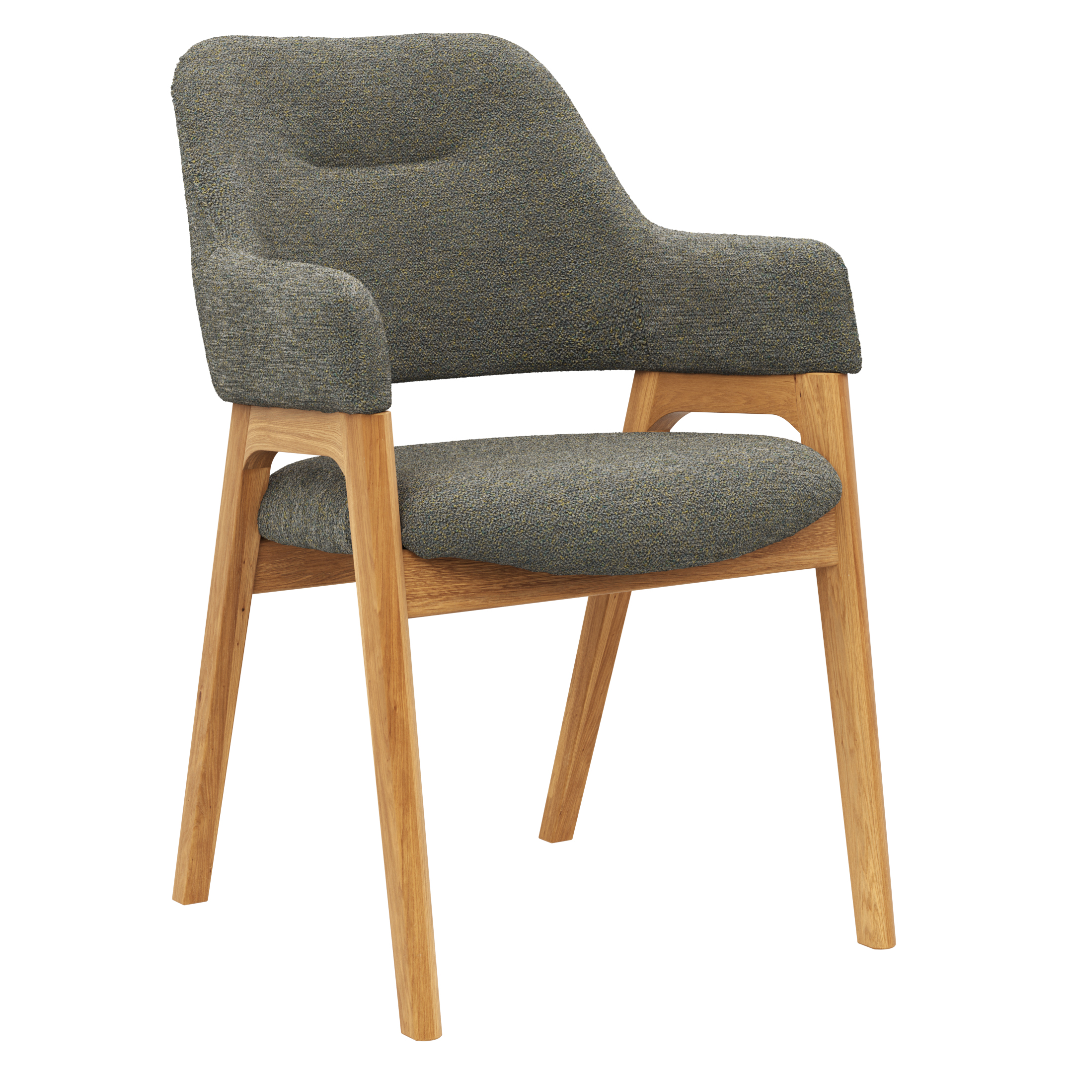 Erlebe den luxuriösen Komfort des Armlehnstuhls Flore 1 von Natura Home in einem eleganten Graugrün. Mit einer Belastbarkeit von ca. 120 kg bietet dieser Stuhl eine stabile Konstruktion aus massivem Wildeichenholz in ansprechender Holzoptik. Die ca. 49 cm hohe Sitzfläche und die Rückenlehne sind mit hochwertigem Schaumstoff gepolstert, was für ein angenehmes Sitzerlebnis sorgt. Die klassische 4-Fuß-Form verleiht dem Stuhl ein zeitloses Design, das sich nahtlos in verschiedene Einrichtungsstile einfügt. Perfekt für stilvolle Wohn- oder Essbereiche, kombiniert er Funktionalität mit ästhetischem Anspruch.
