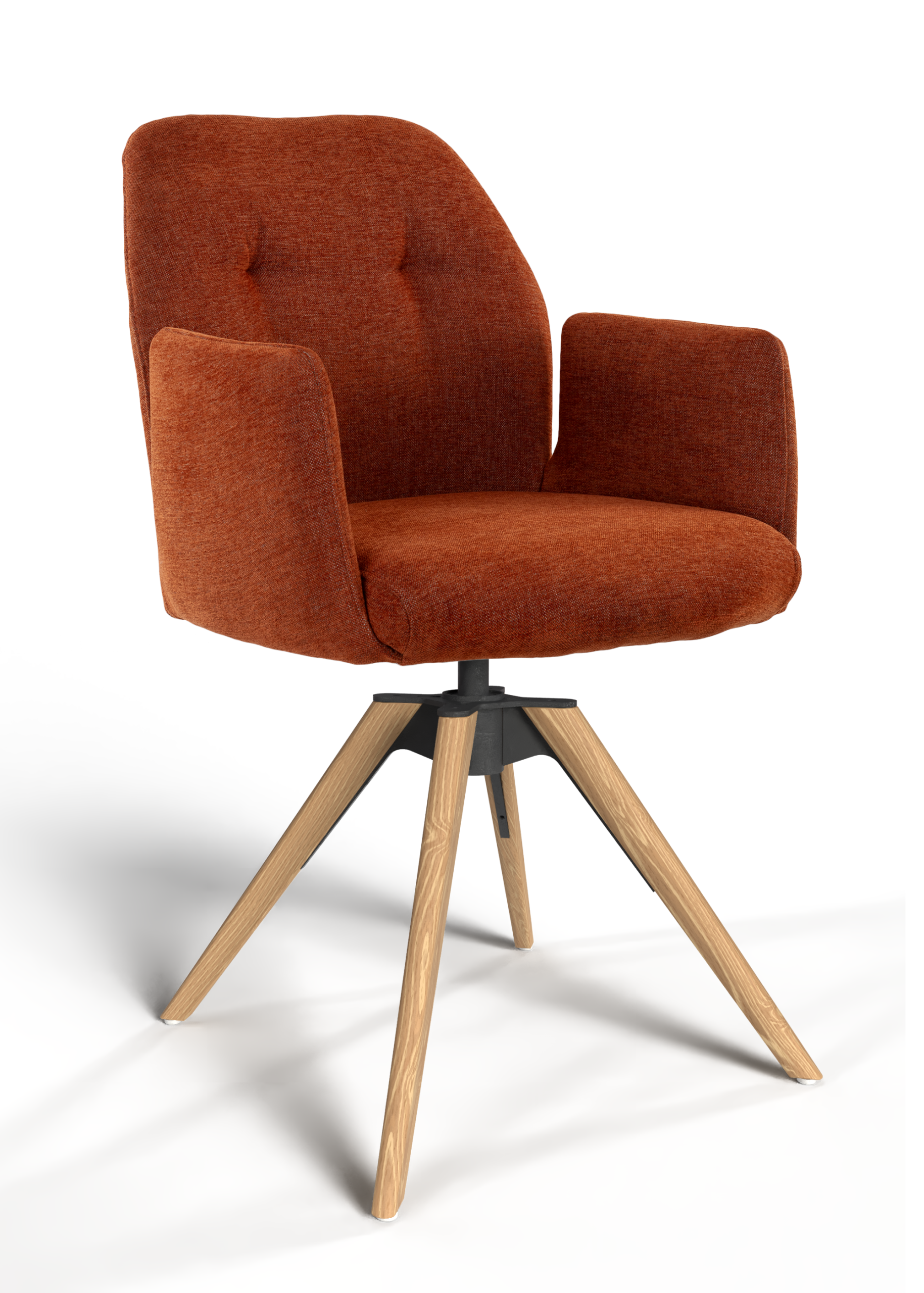 Der Armlehnstuhl Nashfield von Natura Home vereint stilvolles Design und hohen Komfort. Mit einer Sitzhöhe von ca. 49 cm und einer Belastbarkeit von bis zu 120 kg bietet er hervorragende Stabilität. Die massiven Eichenbeine im Holzfarbton verleihen dem Stuhl eine natürliche Eleganz, während die statische Form für einen sicheren Stand sorgt. Die bequeme Polsterung aus Schaumstoff in Sitz und Rückenlehne sorgt für langanhaltenden Sitzkomfort und lädt zum Entspannen ein. Der drehbare Mechanismus ermöglicht es dir, dich mühelos in jede Richtung zu bewegen, perfekt für gesellige Runden oder entspannte Abende.