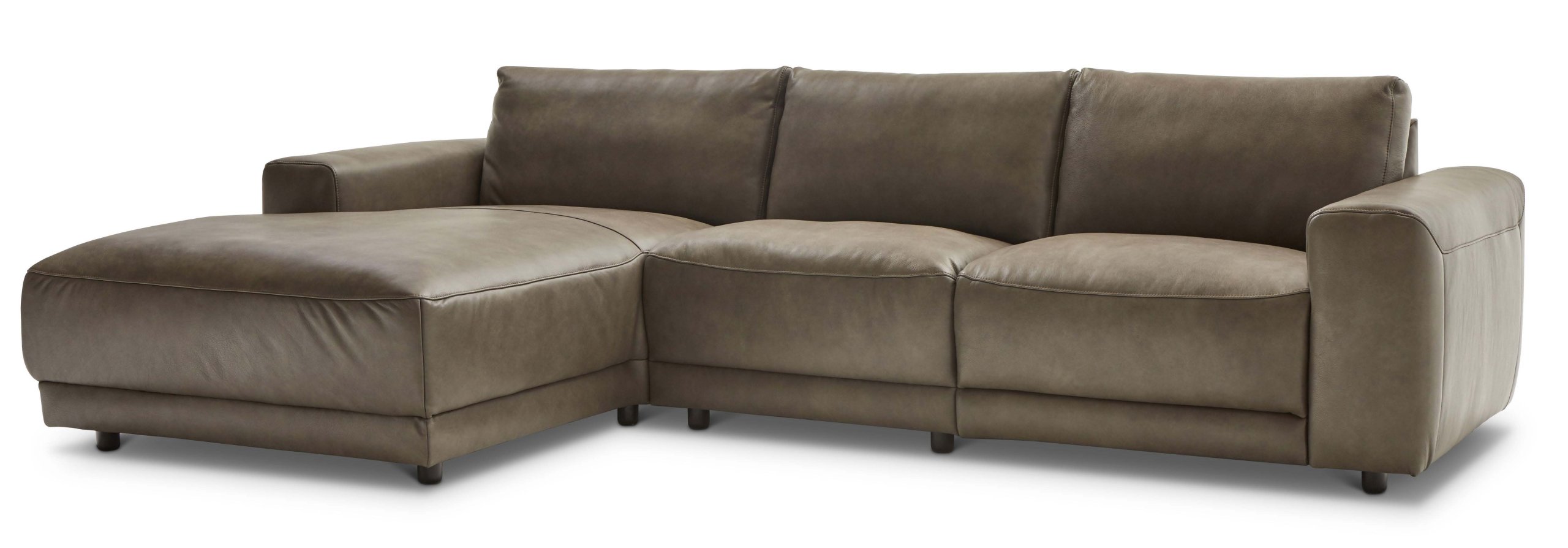 Ecksofa Balok – Longchair groß links mit 2,5-Sitzer, Leder, Braungrün
