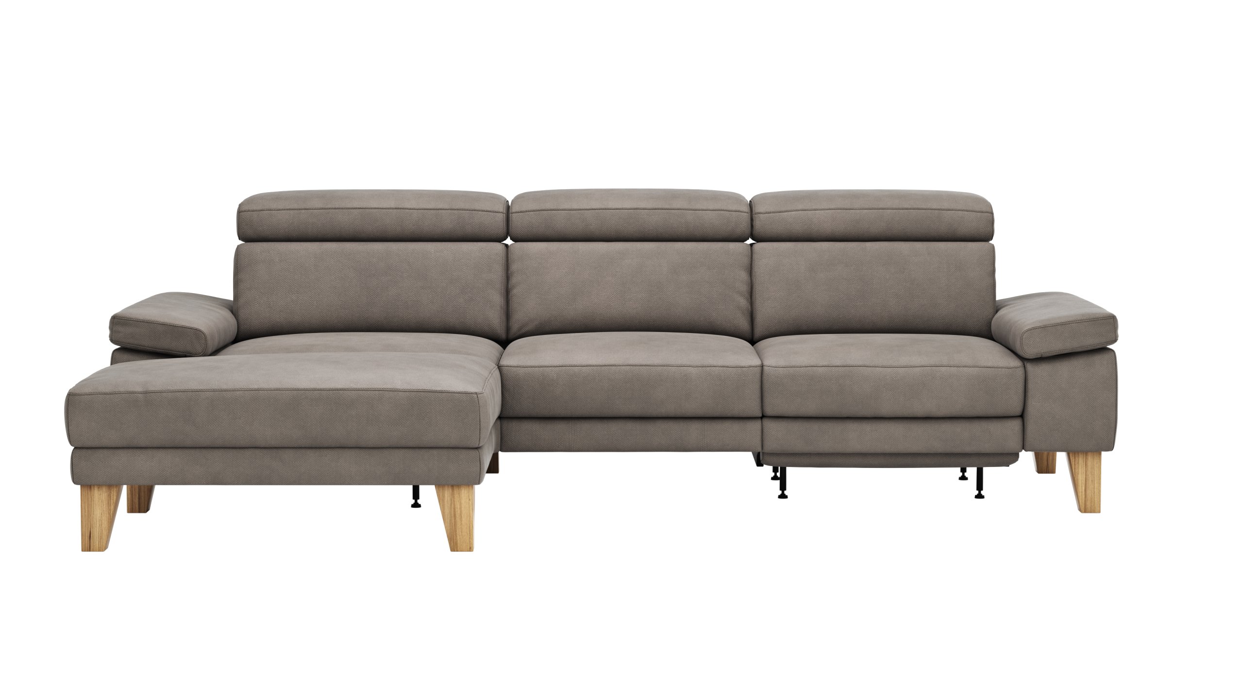 Ecksofa Hudson – Longchair links mit 2,5-Sitzer, inkl. Kopfteil/Armlehne verstellbar und Relaxfunktion (motorisch), Stoff, Steingrau
