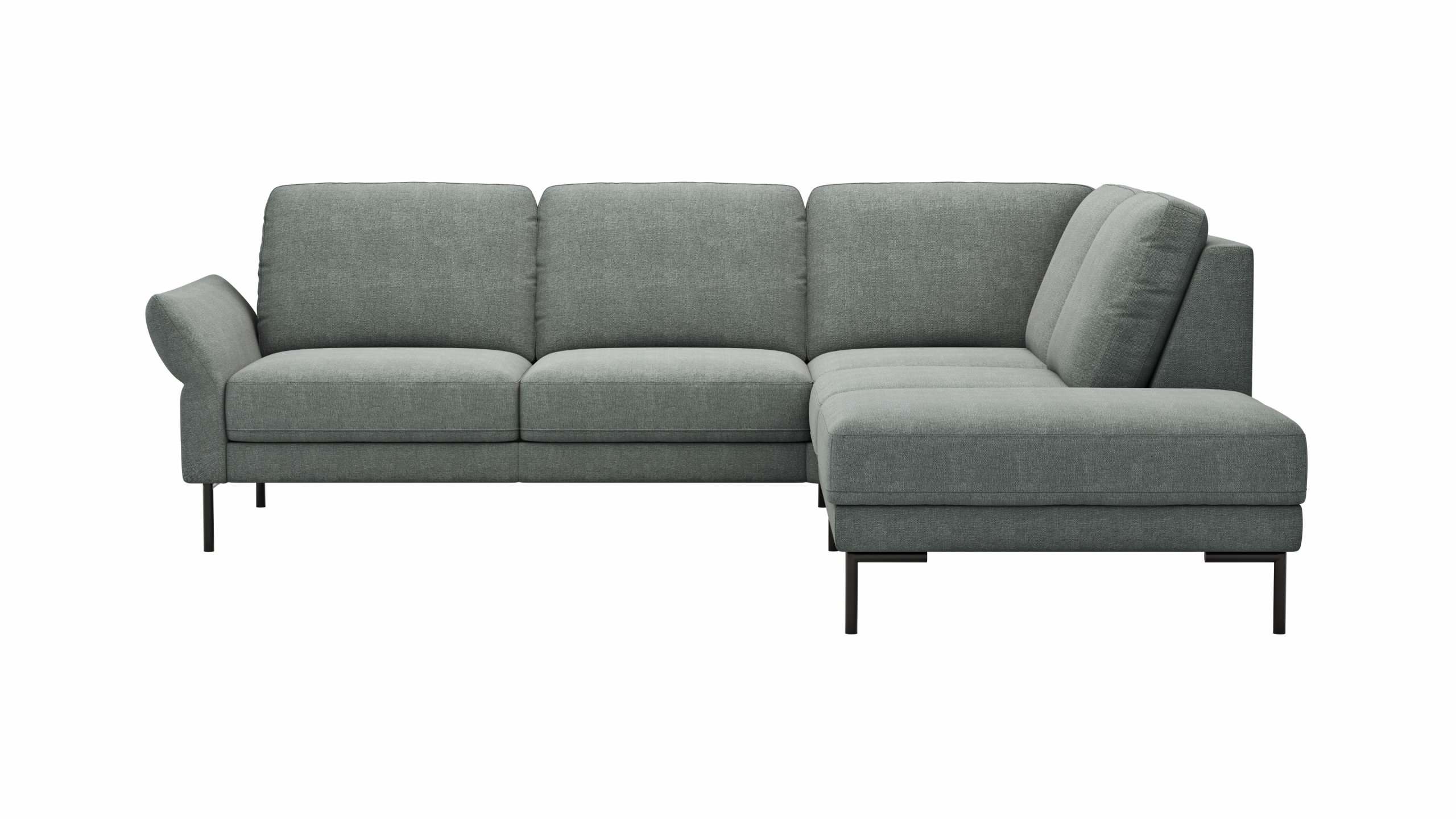 Ecksofa Rockport A – 2,5-Sitzer mit Ecke rechts, inkl. Sitzauszug (motorisch) und Armlehne klappbar, Stoff, Eisblau
