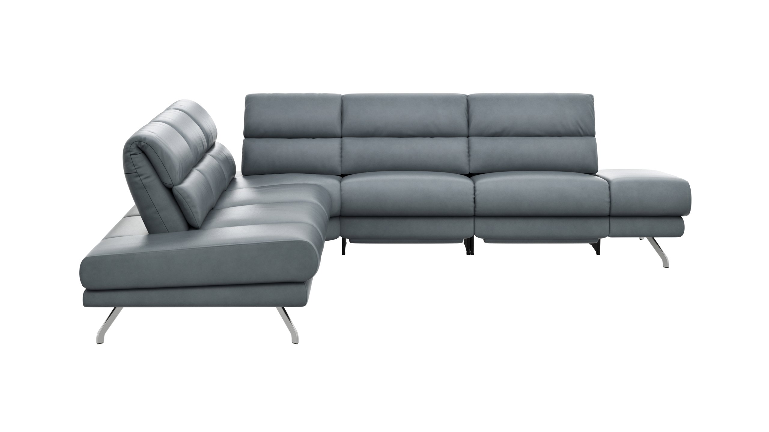 Ecksofa San Fernando – 2-Sitzer mit Ecke rechts, Armlehne verstellbar, Rückenlehne/Sitztiefe verstellbar, Relaxfunktion motorisch, Leder, Eisenrau