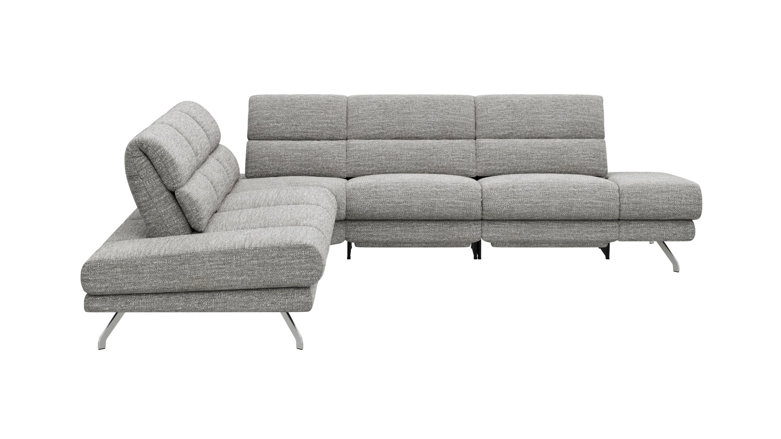 Bezug: Stoff Longlife Magic grey, PG.30, Füße: K2 chrom, bestehend aus: Sofa 2-Sitzer standard AT. links, Winkelecke, 2,5-Sitzer mit 2 TV-Funktionen motorisch AT. rechts