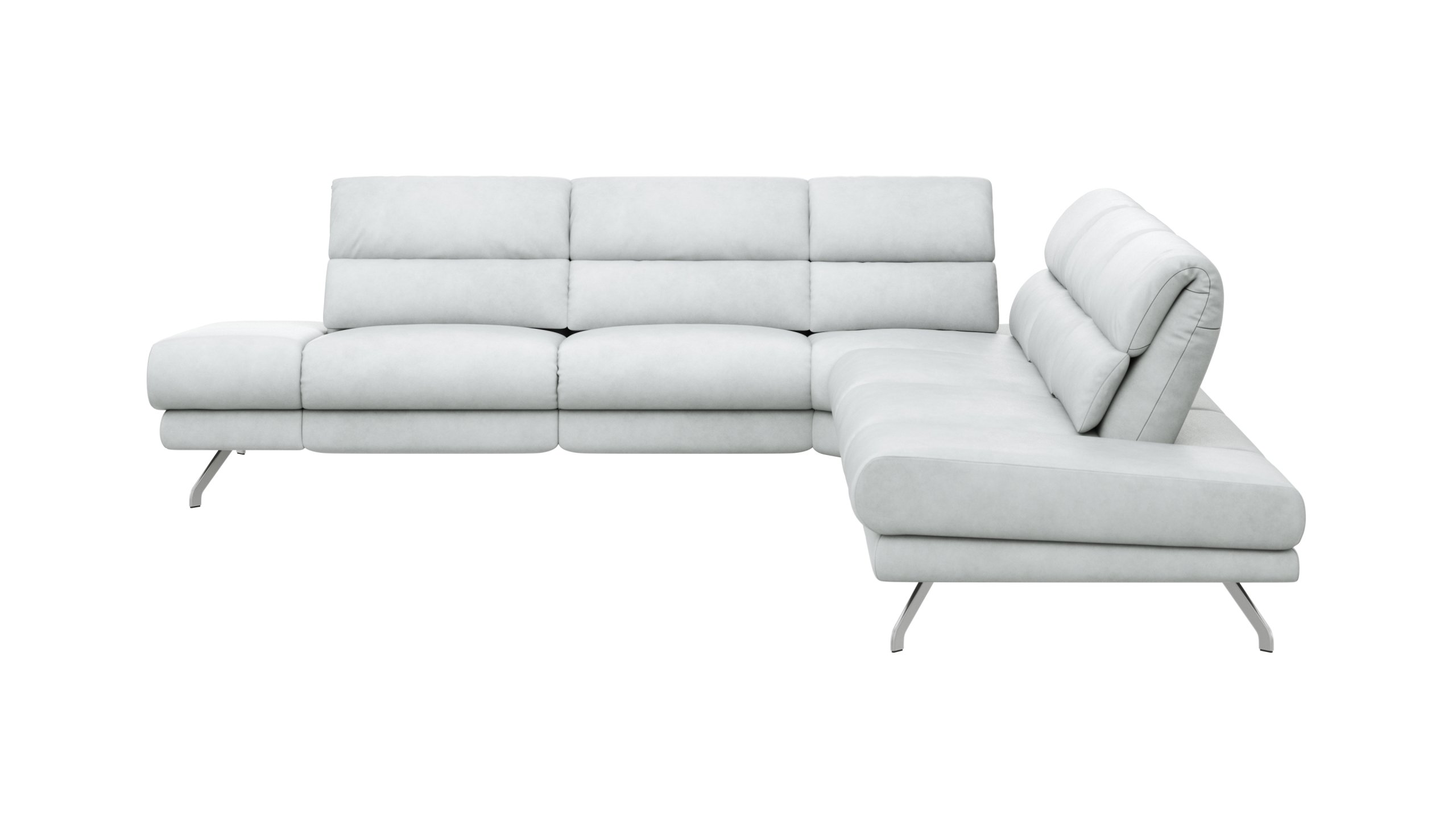 Ecksofa San Fernando – Ecke links mit 2-Sitzer, Armlehne verstellbar, Rückenlehne/Sitztiefe verstellbar, Leder, Eisblau