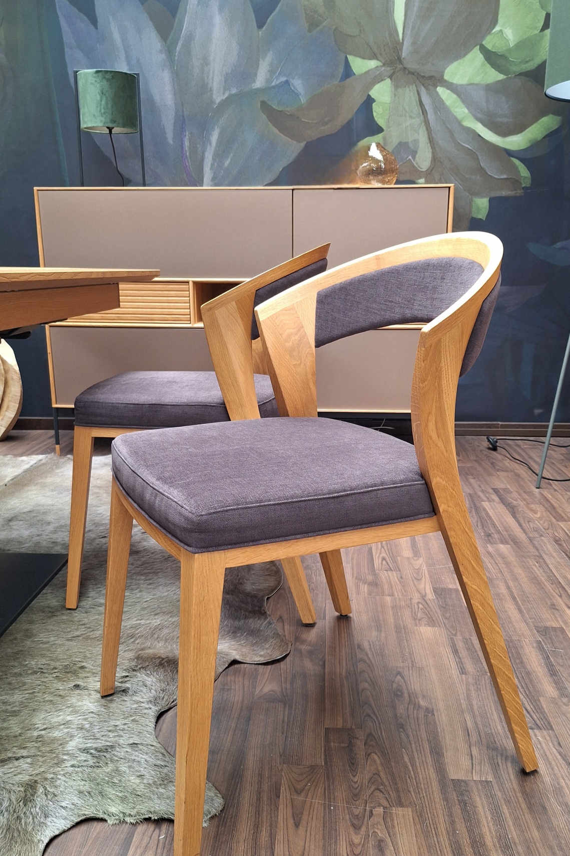 2 Stühle “Lifestyle 640” in Asteiche gebürstet, Sitz und Lehnen gepolstert, Stoff I/H023