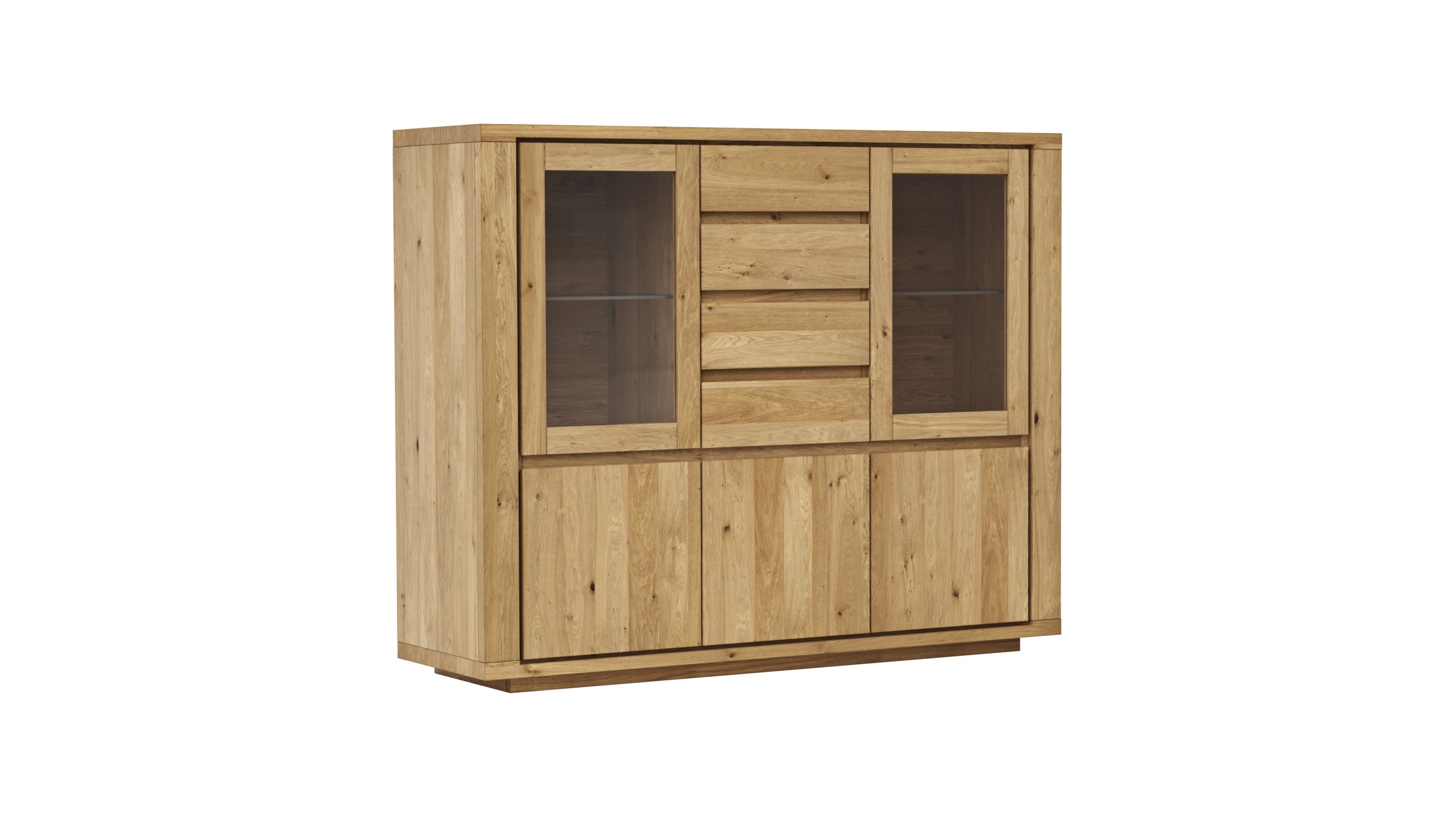 Highboard Bakersfield – sichtbare Rückwand geschroppt, Asteiche massiv, geölt