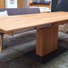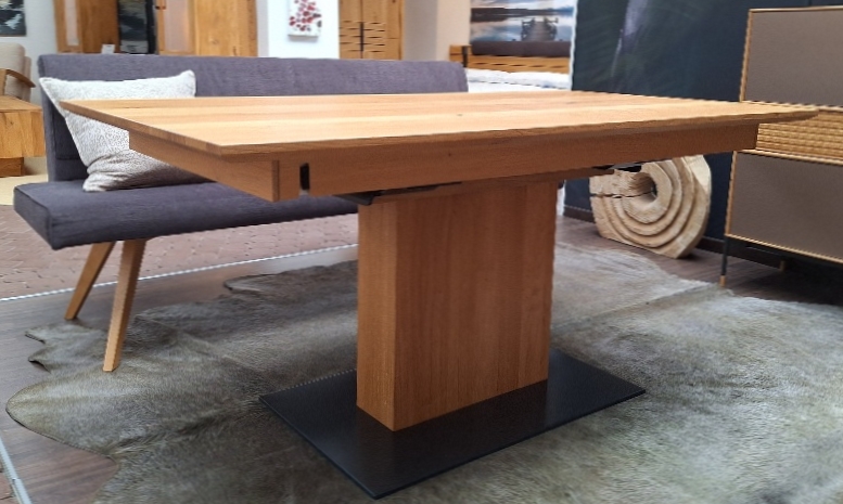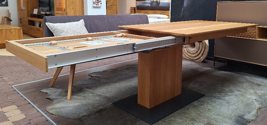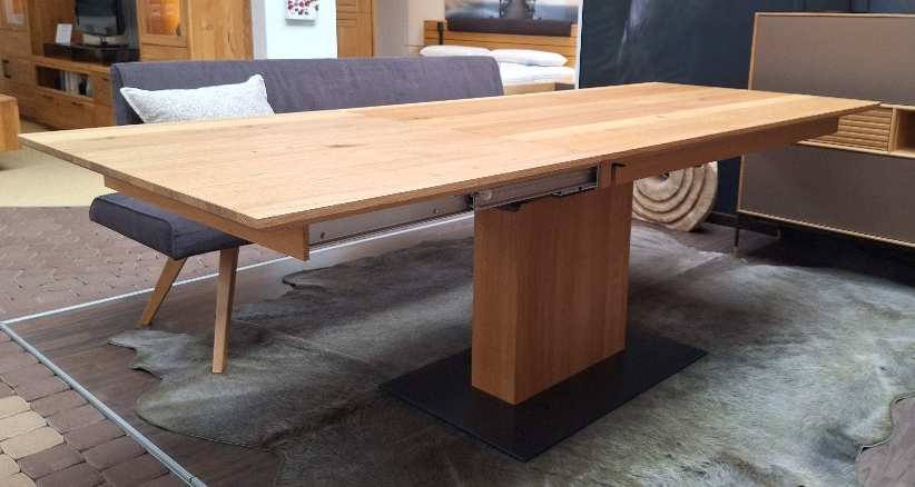 Säulentisch mit Synchronauszug in Asteiche gebürstet